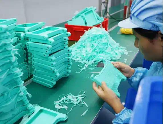 Medical parts need to be removed by a suction cup robot and immediately cooled and shaped, while ordinary parts are directly removed and burrs are trimmed.
