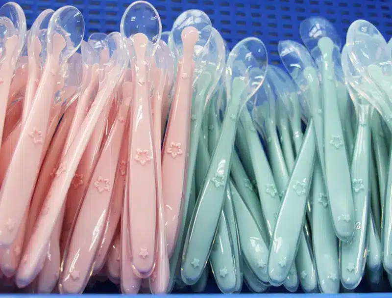 Precision molds are produced using CNC machine tools to ensure the spoon’s shape is ergonomic and suitable for infant feeding. For example, the spoon head is designed with a shallow concave shape for easier sucking, and the handle is designed to be a comfortable grip for infants and young children.