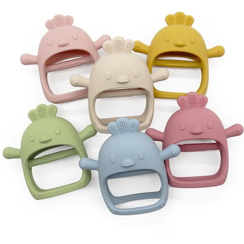 The Silicone Toys are available in custom different colors as the pantone book, also can make the double color and mixed marble color, custom the sizes width from 4-9cm,Length from 5-12cm to fit different ages from 3 months -36 months, custom designs or shape by develop the new tooling or use the different silicone molding process. Custom the pattern by different printing methods from screen printing to In-mold. For 3D pattern Food Grade Silicone Toy, we recommend you use the Silicone Dripping Dispensing Molding to get the multi 3D color and cute design.