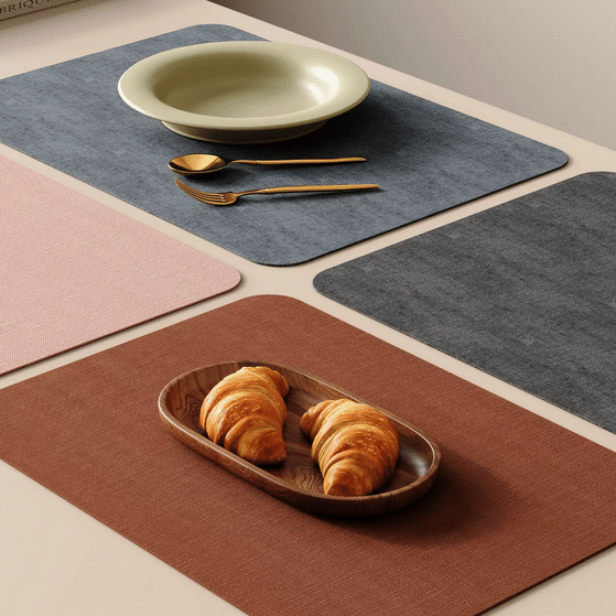 Semicircle Silicone Placemats, like their round counterparts, serve as protective and non-slip surfaces for tableware, shielding tables from scratches and spills. Their distinctive semicircular shape is particularly suitable for placement along the edge of rectangular or square tables, optimizing space usage and alignment.